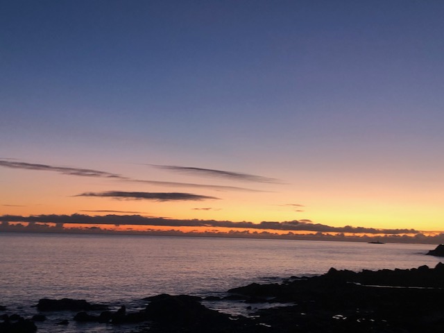 Visit Riomaggiore village on cliff rocks and sea at sunset.