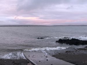 Visit Riomaggiore village on cliff rocks and sea at sunset.